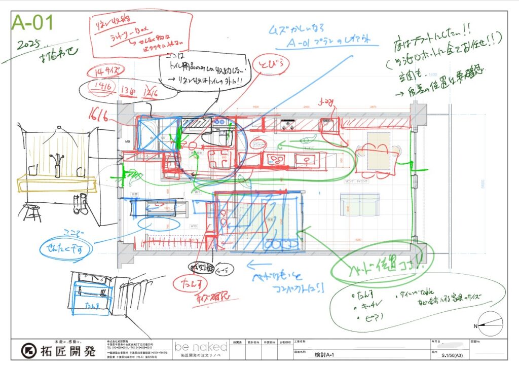 オーナー様のご要望を伺い、現地確認でリノベーションできるコト/できないコトを確認した後は「プランの検討」です!