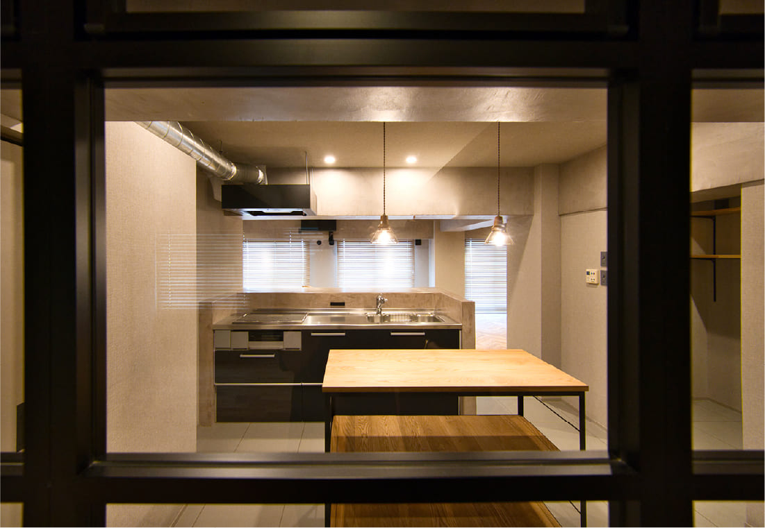 施工事例|内装|アフター|室内窓がつなぐ光と風。モルタル素材を愉しむ大人のためのリノベーション