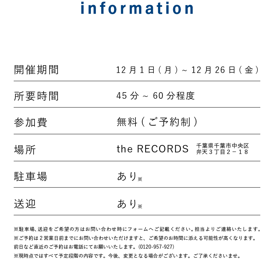 ※ご希望の日時で予約がお取りできたか、担当者よりメールにてお返事いたします。